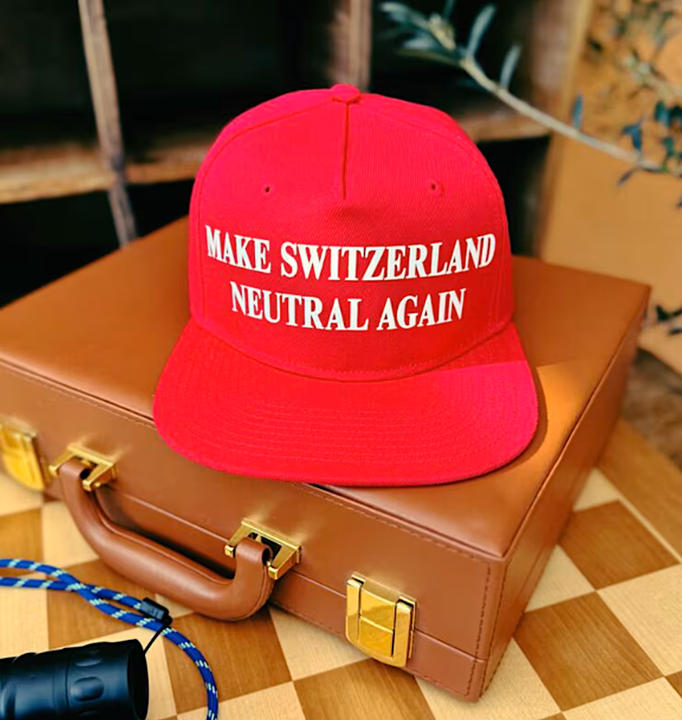 Газета «Die Weltwoche», известная антилиберальной редакционной позицией, начала продажи своей версии знаменитой красной кепки Дональда Трампа со слоганом «Сделаем Швейцарию снова нейтральной».