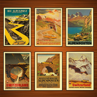 Почтовые автобусы на линии в Санкт-Моритце, Зинале, на перевале Симплон.//PTT