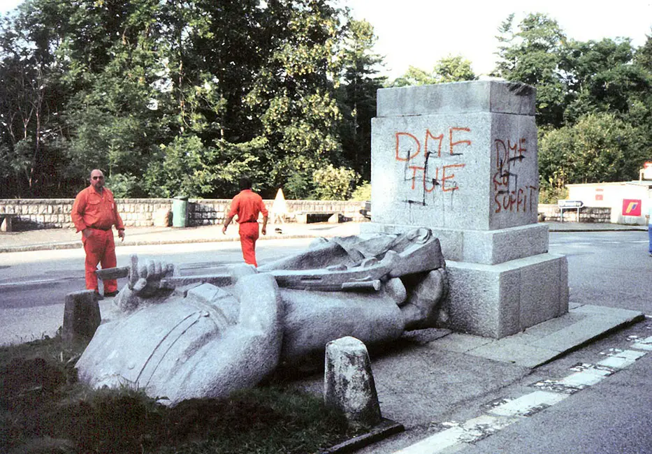 3 сентября 1962 года памятник впервые подвергся акту вандализма со стороны Фронта юрского освобождения. На нем был нарисован герб Юры и инициалы «FLJ». После этого на статую ещё несколько раз нападали.