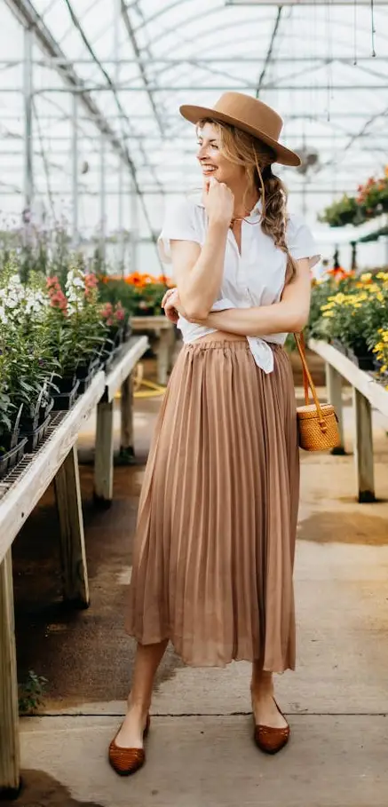Для комбинации «на каждый день», например, из плиссированной юбки и футболки/топа/лонгслива подойдут кроссовки, лоферы или босоножки на плоской подошве.