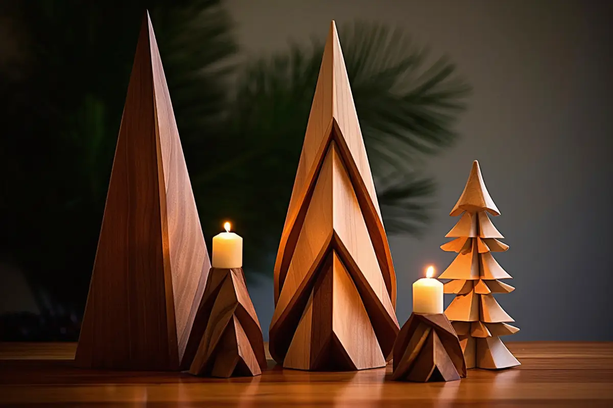 Эстетичной и долговечной альтернативой становятся елки из природных материалов, в частности деревянные конструкции или композиции из сухих веток. Деревянные елки могут быть минималистичными, дизайнерскими, модульными и служить годами без потери внешнего вида. Елки из найденных веток создают уютный эко-стиль и абсолютно не требуют новых ресурсов. Такие варианты идеально подходят для интерьеров в стиле минимализм, скандинавского или эко-дизайна, а также прекрасно вписываются в рабочие пространства, где важна лаконичность и отсутствие ухода.