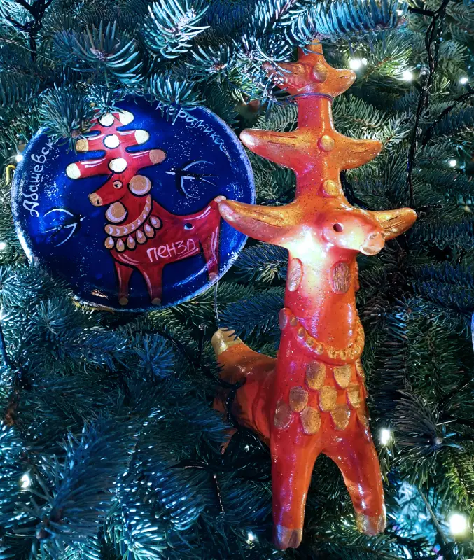 Первые ёлочные игрушки из стекла и картона фабричного производства появились в России в XIX веке. Русские мастера взяли за основу технологию немцев. Производились и стеклянные шары, но они были довольно тяжёлыми.